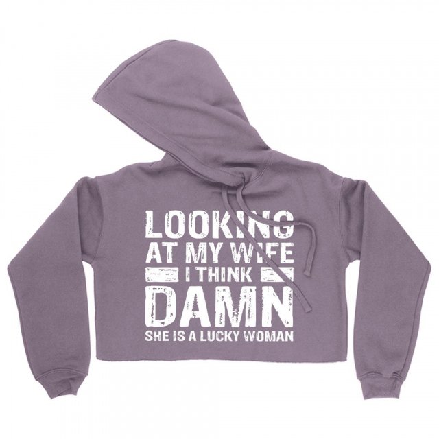 Women’s Cropped Fleece Looking at My Wife Funny Family Hoodie – Funny Wife Hoodies
